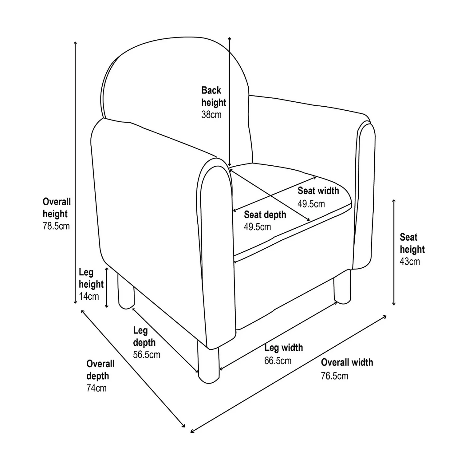 | Floor To Seat Height | 43cm |