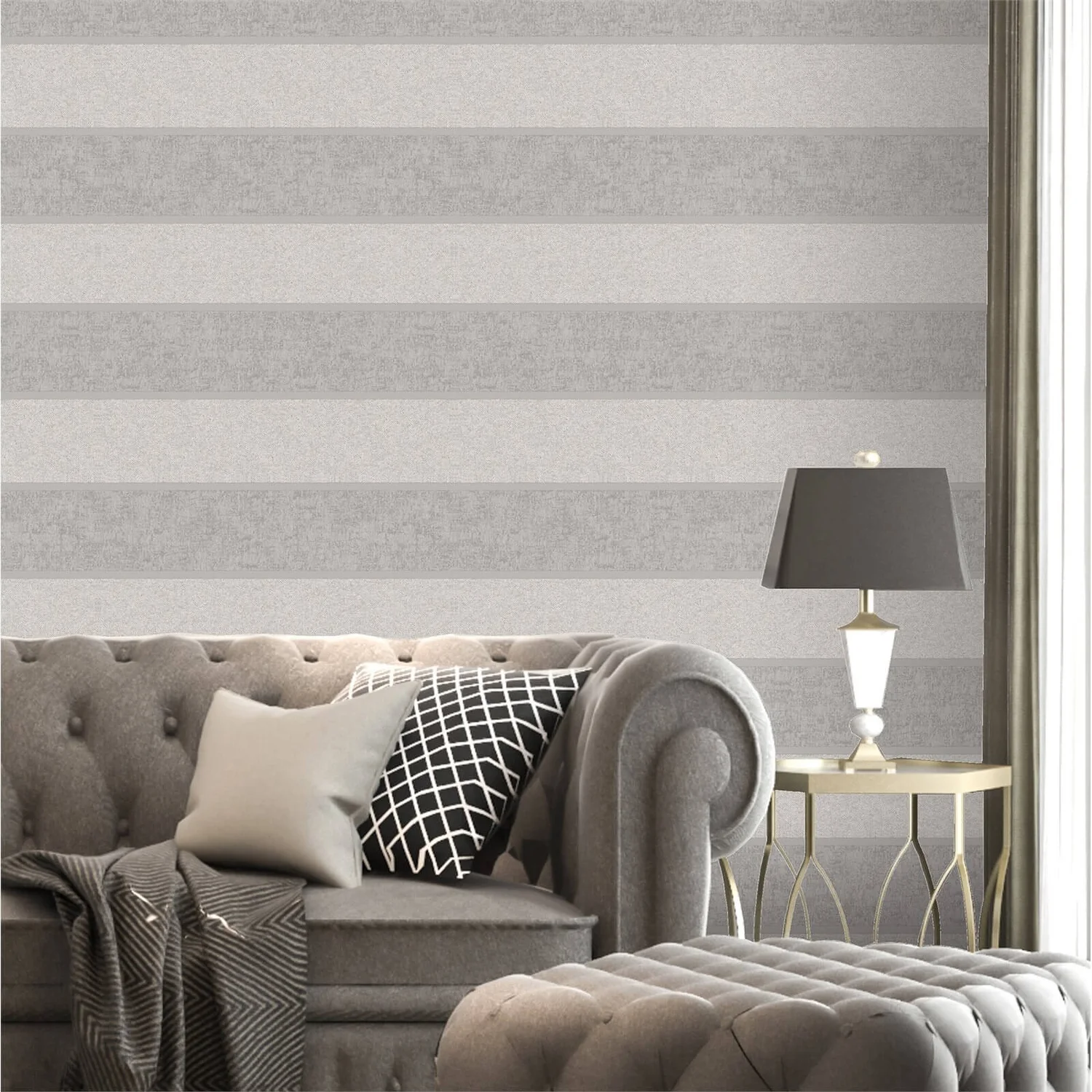 Belgravia Decor San Remo stripe is a deeply embossed fabric effect vinyl wallcovering in soft shimmering colours. Hardwearing and scrubbable.