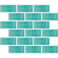 House Of Mosaics Teal Crackle Midi Metro Mosaic Tile – 295 X 288mm