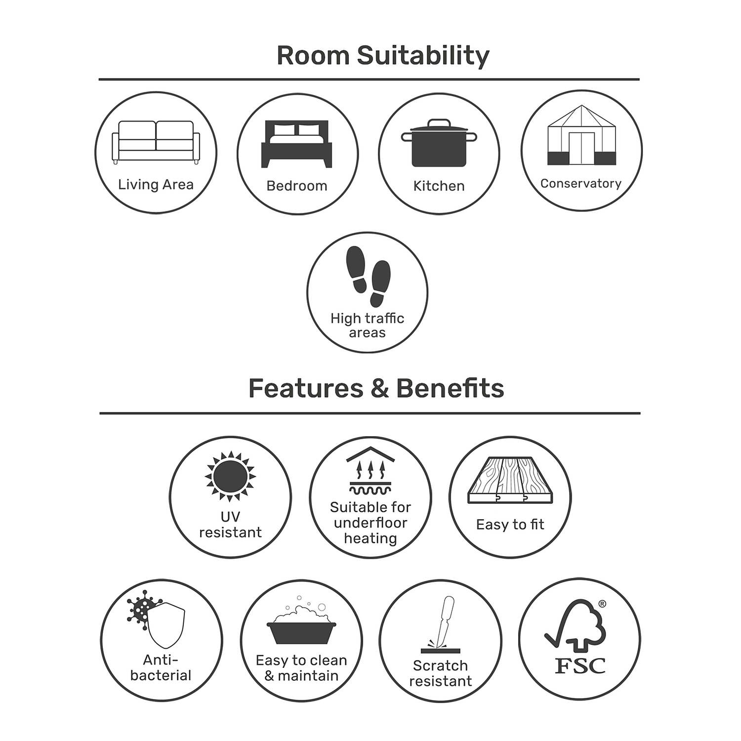 | Rooms Suitable For | Kitchen, living areas, conservatory, high traffic areas |