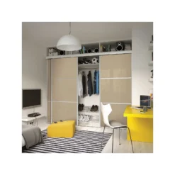 Loft Sliding Wardrobe Door Cream Glass With Silver Frame (W)914mm