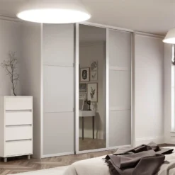 Shaker 4 Door Sliding Wardrobe Kit Dove Grey Panel / Mirror With Dove Grey Frame (W)2290 X (H)2260mm