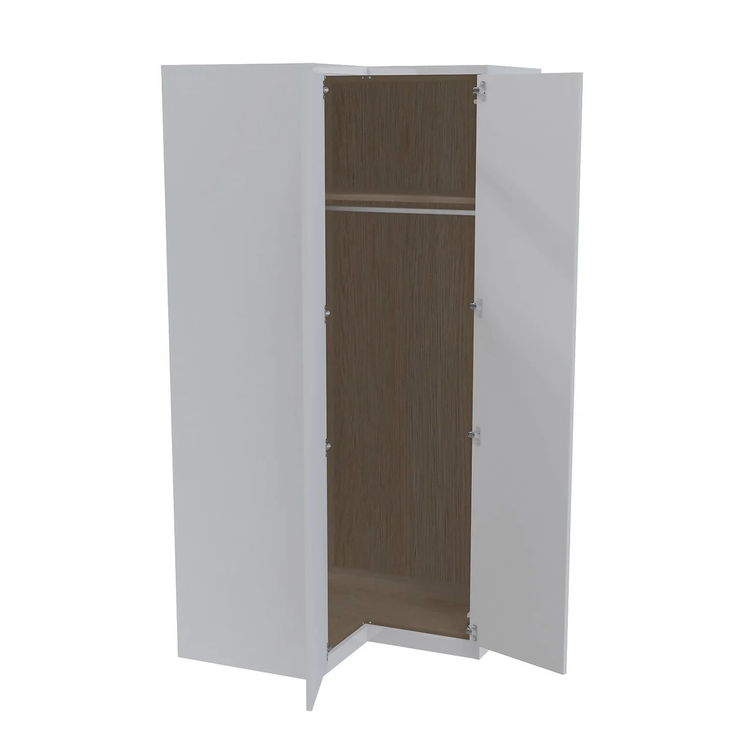 - The carcass features adjustable feet for levelling on uneven floors and is supplied with the instructions and components to secure to the wall (wall plugs not supplied). The corner wardrobe is a storage must have, it features five internal shelves and ample hanging space. A real solution for difficult bedroom spaces