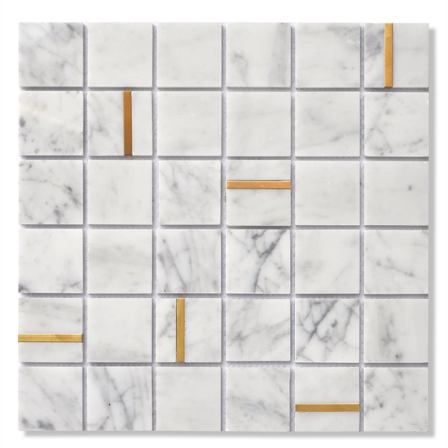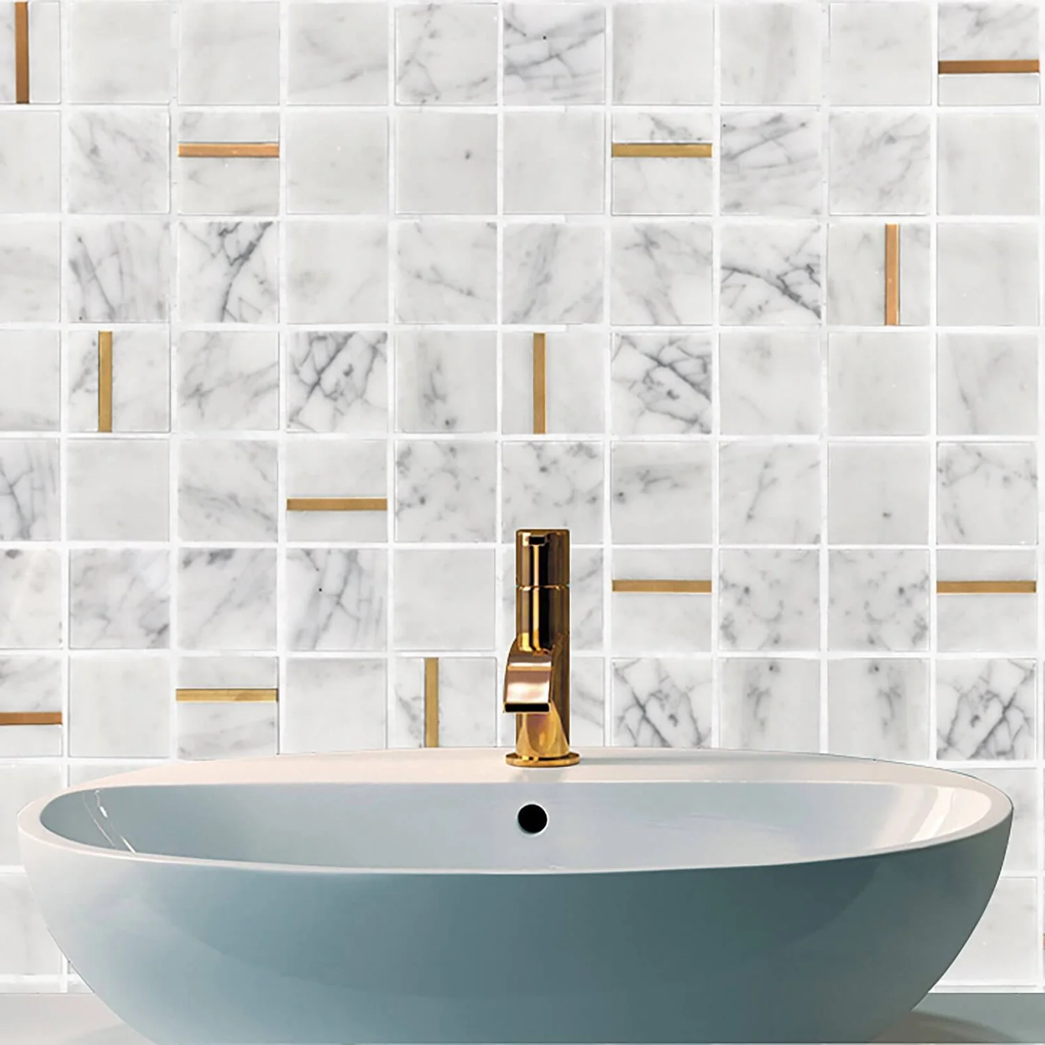 The perfect fusion of classic marble and on-trend brass effect. This unique and innovative design blends white marble pieces, with brass effect pieces, creating an elegant and upmarket feature on any wall.