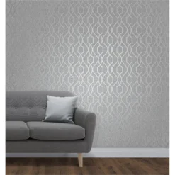 Arthouse Kyasha Damask Embossed Metallic Foil Silver Wallpaper